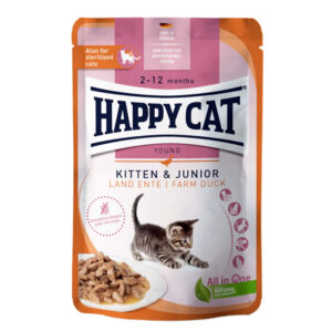 HAPPY CAT KITTEN AND JUNIOR STERILISED MEET IN SAUCE DUCK 85gr