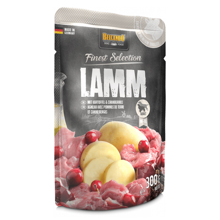 Τα φακελάκια BELCANDO FINEST SELECTION ΑΡΝΙ, με πατάτες και βατόμουρα (GRAIN-FREE) είναι εξαιρετικά νόστιμη και εύπεπτη, ιδανική για ευαίσθητους και καλομαθημένους σκύλους.