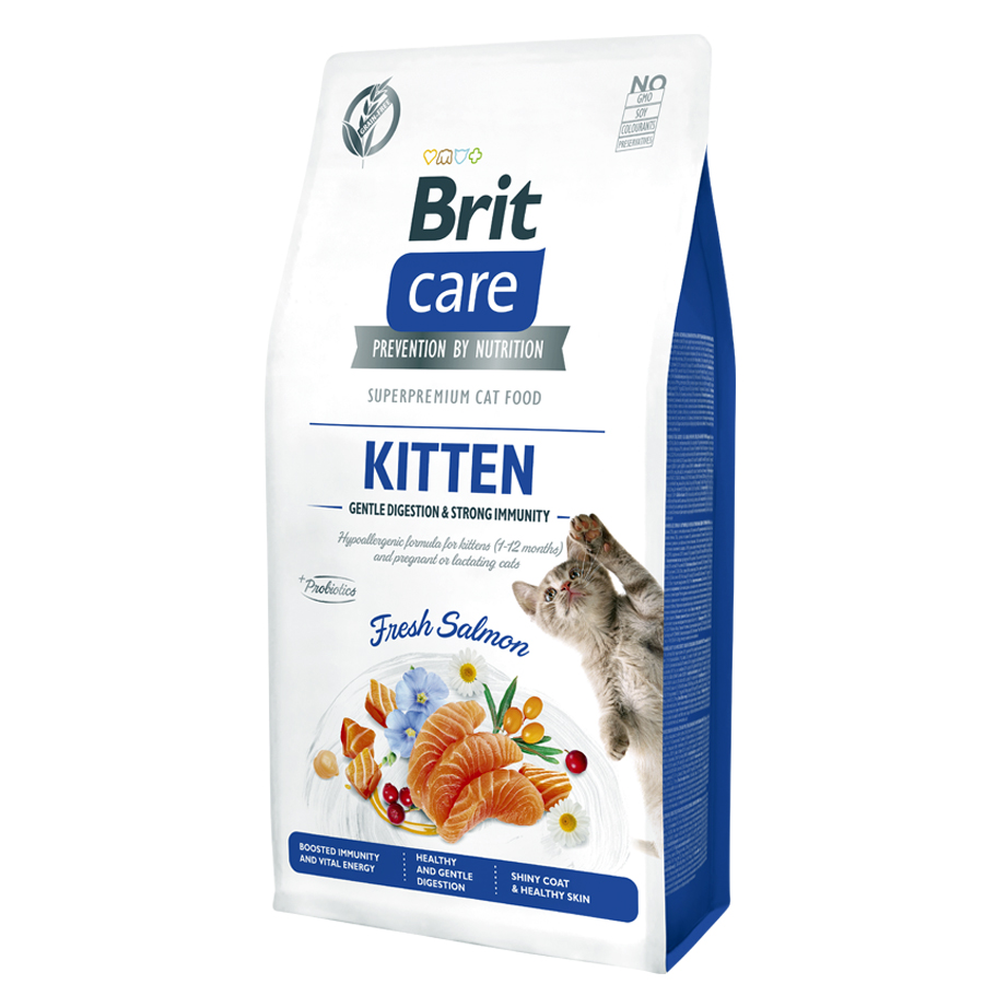 Υποαλλεργική σύνθεση με φρέσκο σολομό. Χωρίς δημητριακά και πλούσια σε πρωτεΐνες με προβιοτικά για υγιή πέψη και ισχυρό ανοσοποιητικό σύστημα. Εξαιρετικά εύπεπτη τροφή, πλούσια σε απαραίτητα θρεπτικά συστατικά η οποία ικανοποιεί τις ενεργειακές απαιτήσεις σε εγκυμονούσες ή θηλάζουσες θηλυκές και υποστηρίζει τη σωστή ανάπτυξη του εμβρύου. Η ισορροπημένη περιεκτικότητα σε ασβέστιο, φώσφορο, μαγνήσιο, βιταμίνη D και ένα σύμπλεγμα βιταμινών, μετάλλων και βασικών λιπαρών οξέων, εξασφαλίζει την υγεία των μικρών γατιών και βοηθά στην πρόληψη της ραχίτιδας.