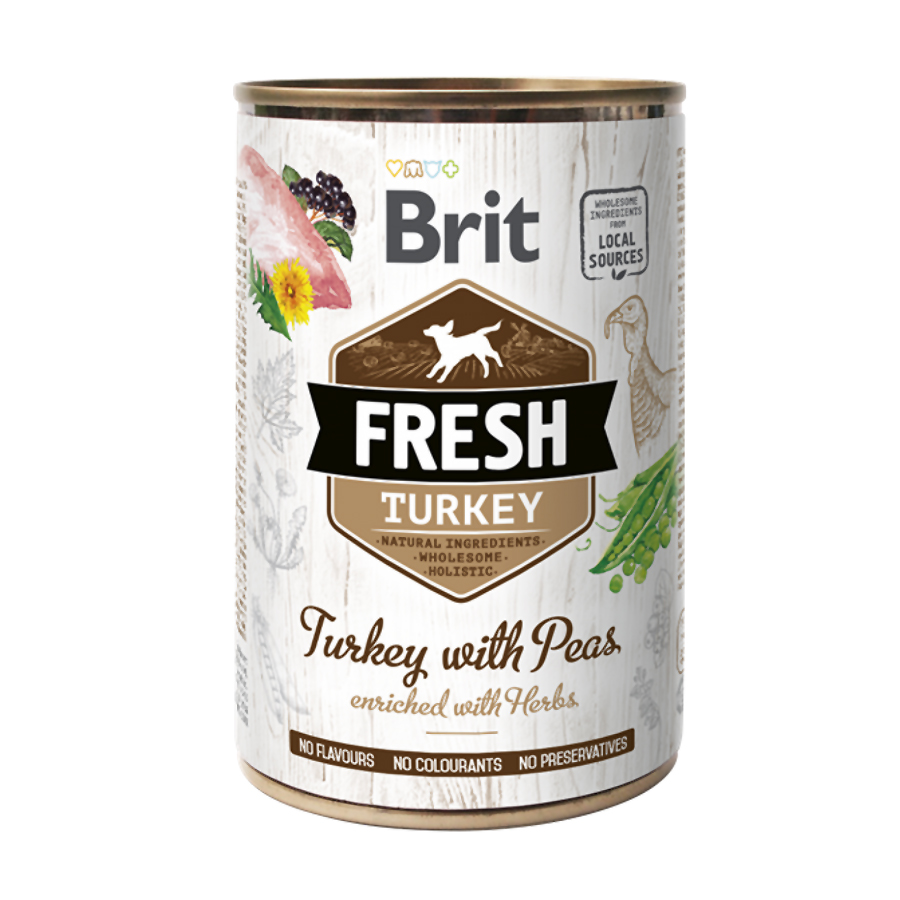 Γαλοπούλα 68%, ζωμός 13%, φαγόπυρο 4,3%, μπιζέλια 4%, ρεβίθια 3%, μήλο 2%, μεταλλικά στοιχεία 2%, βότανα (δεντρολίβανο, θυμάρι, κατιφές, πικραλίδα) 1%, μαϊντανός 1%, έλαιο σολομού 1%, λιναρόσπορος 0,5%, άλγη και αρώνια 0,2%.