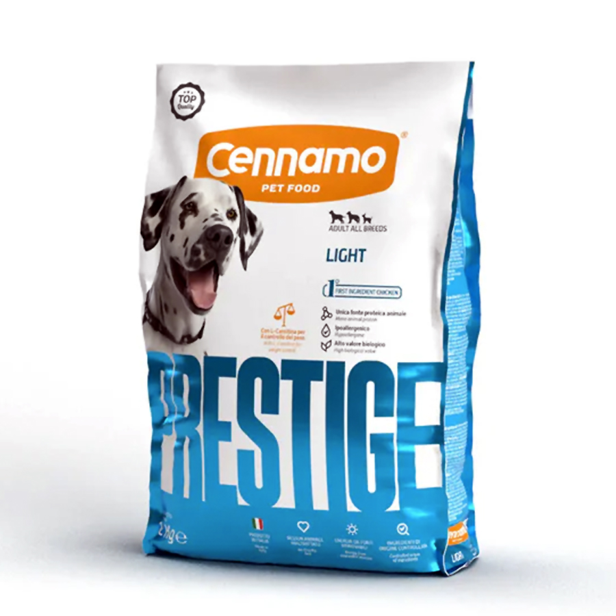 Η Cennamo Prestige Chicken Senior-Light είναι μια μονοπρωτέίνική, υψηλήs ποιότηταs, πλήρηs και ισορροπημένη τροφή με κοτόπουλο για ενήλικουs υπέρβαρουs, και στειρωμένουs σκύλουs όλων των μεγεθών.