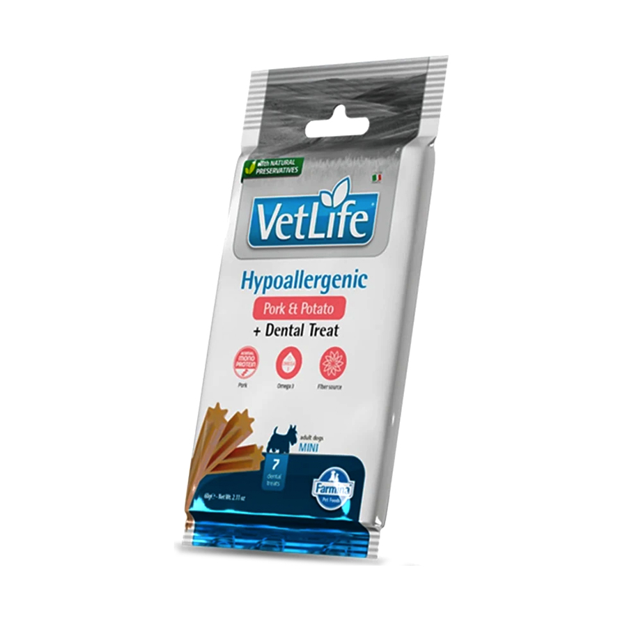 Λιχουδιά Σκύλου Dental Treat Vet Life Dog Hypoallergenic Pork & Potato Adult Mini 60gr 7 Sticks.