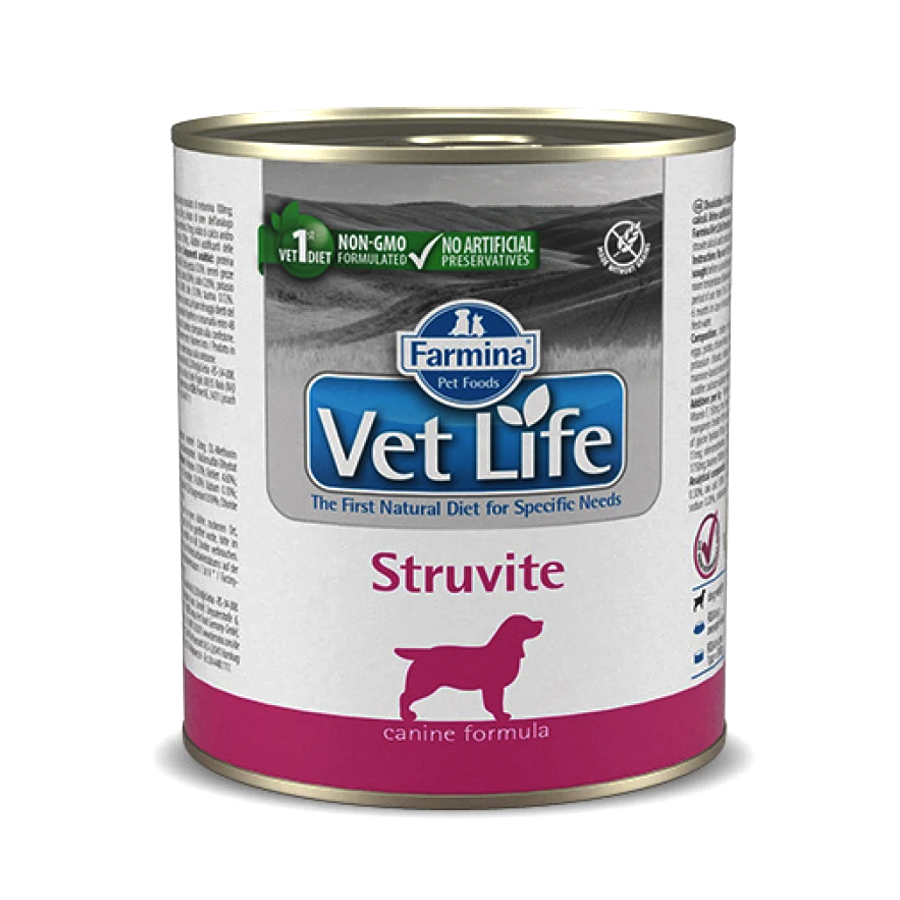 Διάλυση λίθων στρουβίτη και μείωση των υποτροπών. Όξυνση ούρων. Η Farmina Vet Life Struvite είναι μια πλήρης διαιτητική τροφή για ενήλικoυς σκύλους σχεδιασμένη να διαλύει τους λίθους στρουβίτη και να μειώνει τις υποτροπές τους.