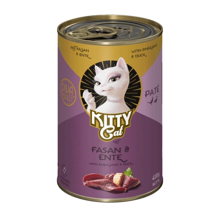 Υγρή Τροφή, Κονσέρβα Γάτας Kitty Cat Pheasant & Duck 400gr με φασιανό και πάπια, για ενήλικες γάτες σε πατέ.