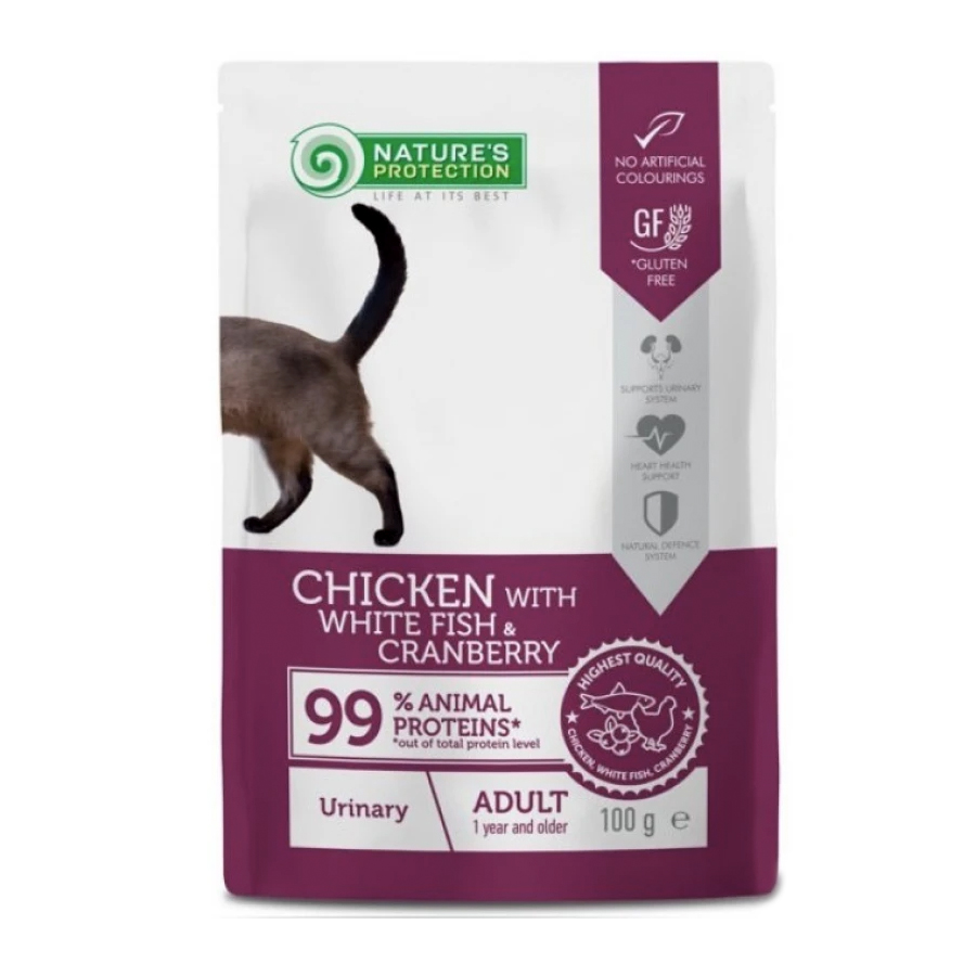 Υγρή Τροφή Γάτας Nature’s Protection Cat Urinary Κοτόπουλο Με Λευκά Ψάρια & Κράνμπερι 100gr.