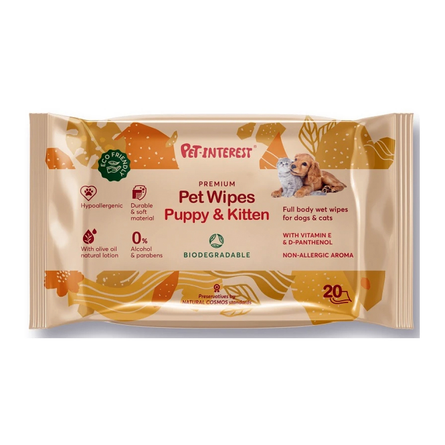Βιοδιασπώμενα Μαντηλάκια Καθαρισμού Pet Interest Puppy & Kitten 20τμχ.
