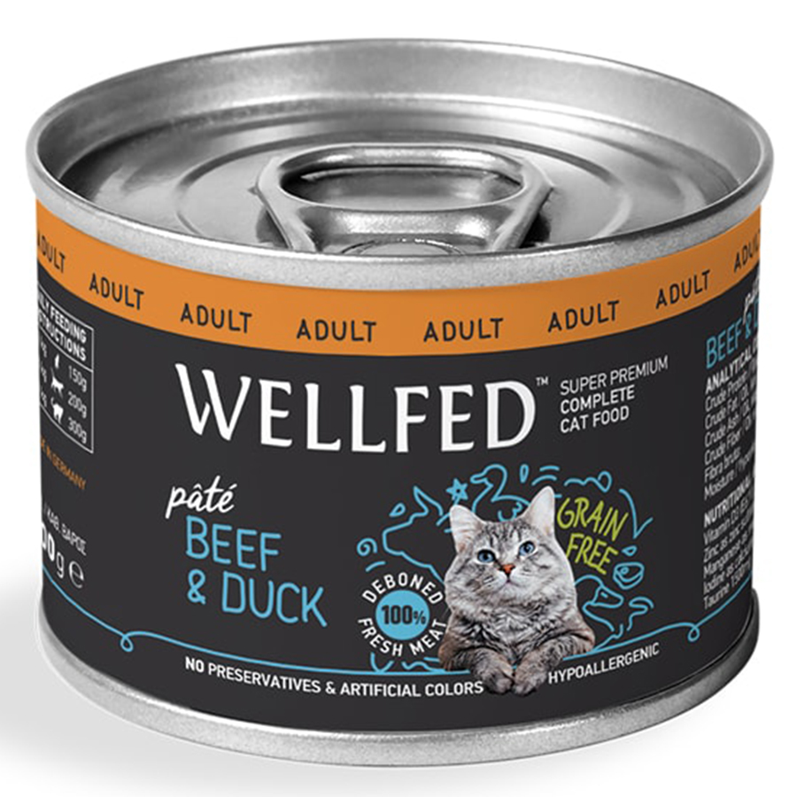 Περιέχει 70% κρέας, καρδιές και συκώτι (50% μοσχάρι, 20% πάπια), ζωμός 28.8%, μεταλλικά στοιχεία 1%, λάδι σολομού 0,2%.