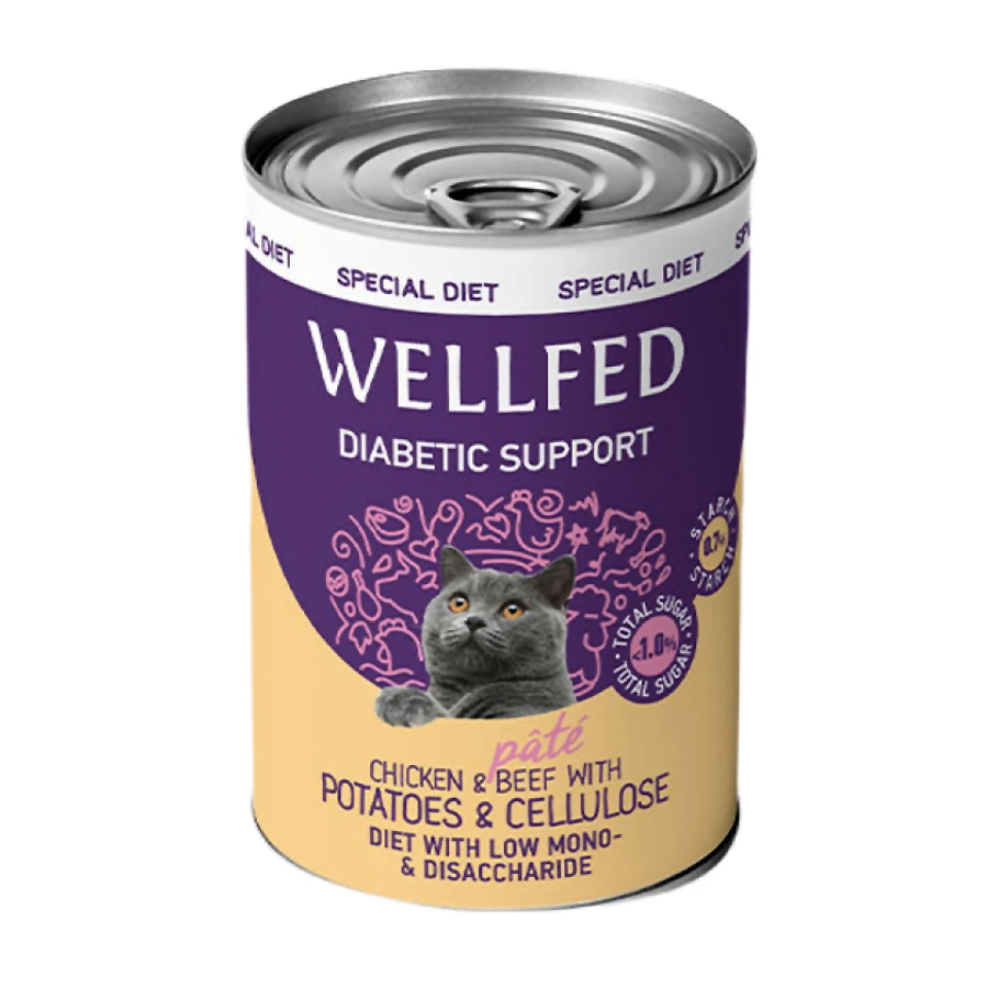 Υγρή τροφή Wellfed Special Diet Diabetic 400gr με Κοτόπουλο, Μοσχάρι, Πατάτες και Κυτταρίνη.