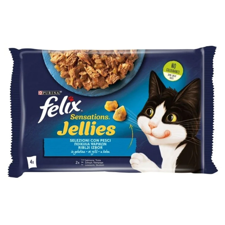 Κάθε γεύμα FELIX Sensations? Jellies έχει τρυφερά κομματια για να τα απολαμβάνει η γάτα σας σερβιρισμένα σε νόστιμο και αρωματικό ζελέ για επιπλέον γεύση και μια ελκυστική μυρωδιά. Είναι πηγή Ωμέγα 6 λιπαρών οξέων και έχουν το σωστό συνδυασμό ισορροπημένων ανόργανων αλάτων που βοηθούν να είναι η γάτα σας γεμάτη ζωντάνια και έτοιμη για σκανδαλιές. Παρασκευάζονται ώστε να προσφέρουν οφέλη στην υγεία και καλύπτουν το 100% των ημερήσιων αναγκών της γάτας σας όταν προσφέρονται βάσει των οδηγιών διατροφής. Και δεν είναι μόνο αυτό! Επιπλέον τα FELIX SENSATIONS? Jellies είναι διαθέσιμα σε μια μεγάλη ποικιλία γευστικών συνδυασμών σε ζελέ, για να ικανοποιήσει την αγάπη της γάτας σας για ποικιλία κάθε μέρα. Έτσι, εάν είστε αρκετά τυχεροί να έχετε μια συγκλονιστική γάτα σαν τον FELIX, ικανοποιήστε τις αισθήσεις της με τα FELIX Sensations Jellies!