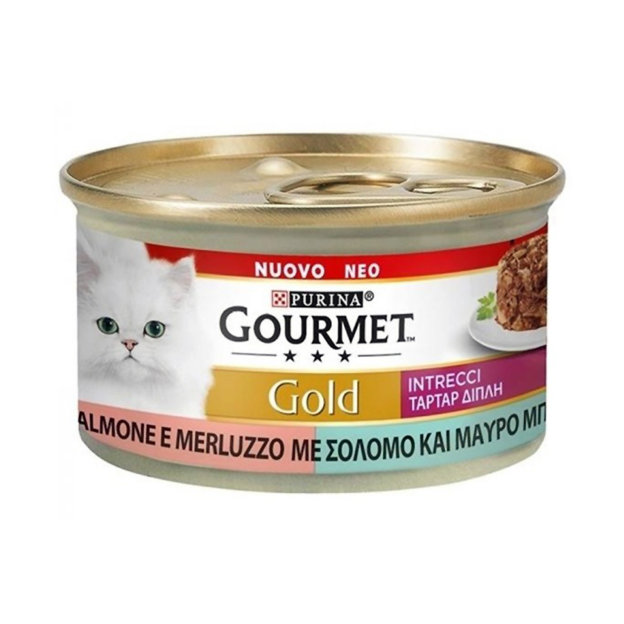 Purina Gourmet Gold ταρτάρ σολομός & μαύρος μπακαλιάρος 85 gr