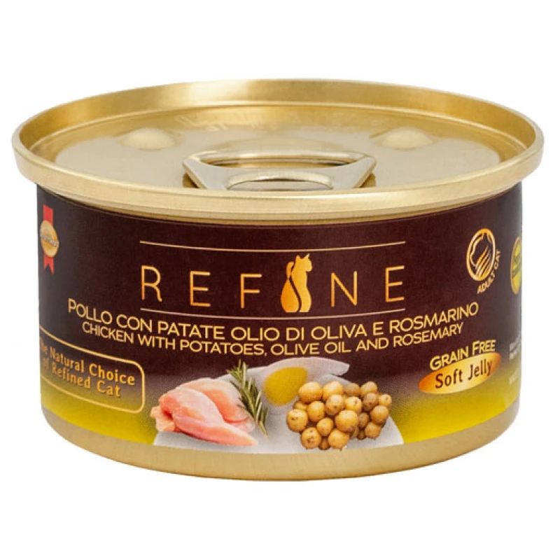 Υγρή Τροφή, Κονσέρβα Γάτας Refine Home Cooking Κοτόπουλο με Πατάτες, Ελαιόλαδο & Δεντρολίβανο 80gr.
