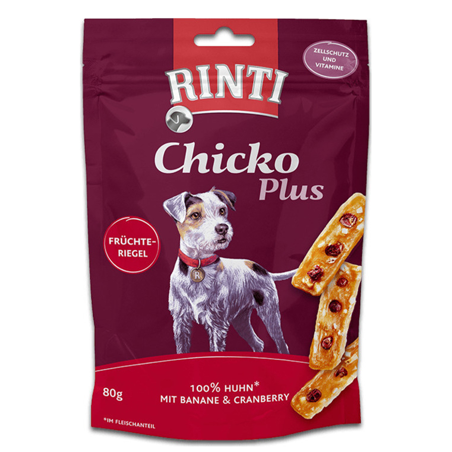 Οι φραγμοί Chicko Plus με κοτόπουλο παρασκευάζονται αποκλειστικά από φρέσκο φιλέτο στήθους κοτόπουλου, καθώς και μπανάνες και βακκίνια, χωρίς δεξαμενή, χωρίς σόγια (εκχυλίσματα φυτικών πρωτεϊνών) και ξηραίνονται απαλά στον αέρα με επακόλουθη αποστείρωση. Όχι μόνο έχουν πολύ νόστιμη γεύση, είναι επίσης υγιεινά και εύπεπτα