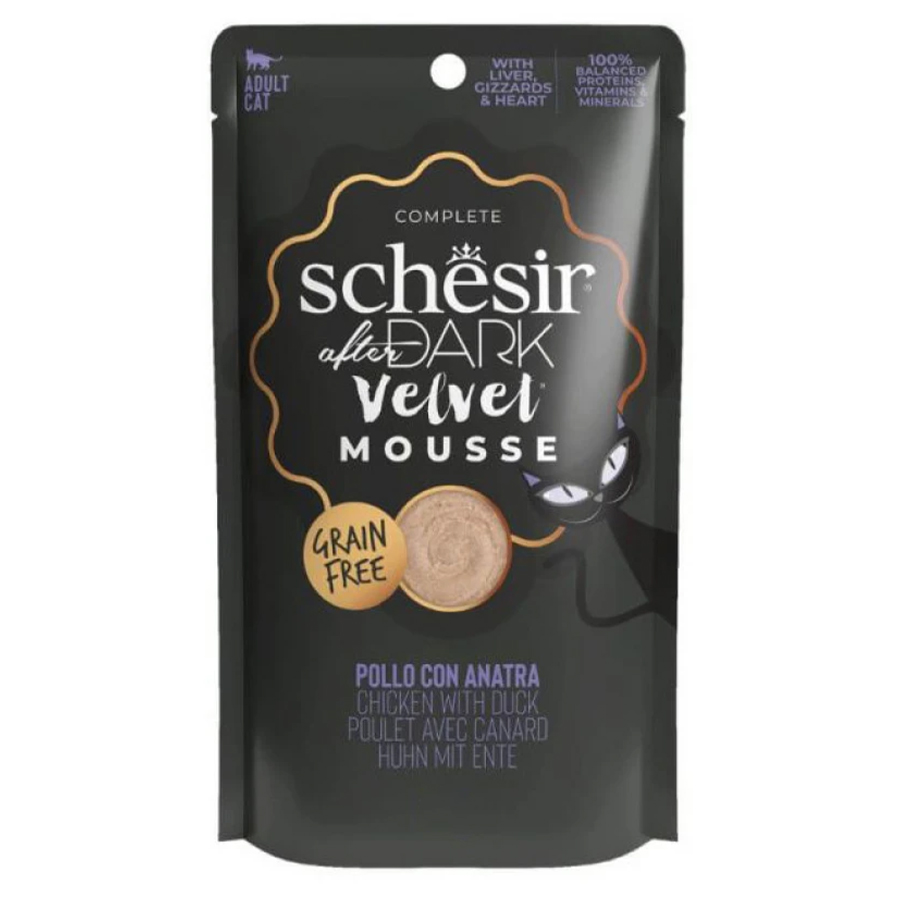 Το Schesir After Dark Chicken & Duck Mousse καλύπτει τις διατροφικές ανάγκες της γάτας σας χάρη σε μια συνταγή πλούσια σε πρωτεΐνη και θρεπτικά συστατικά.