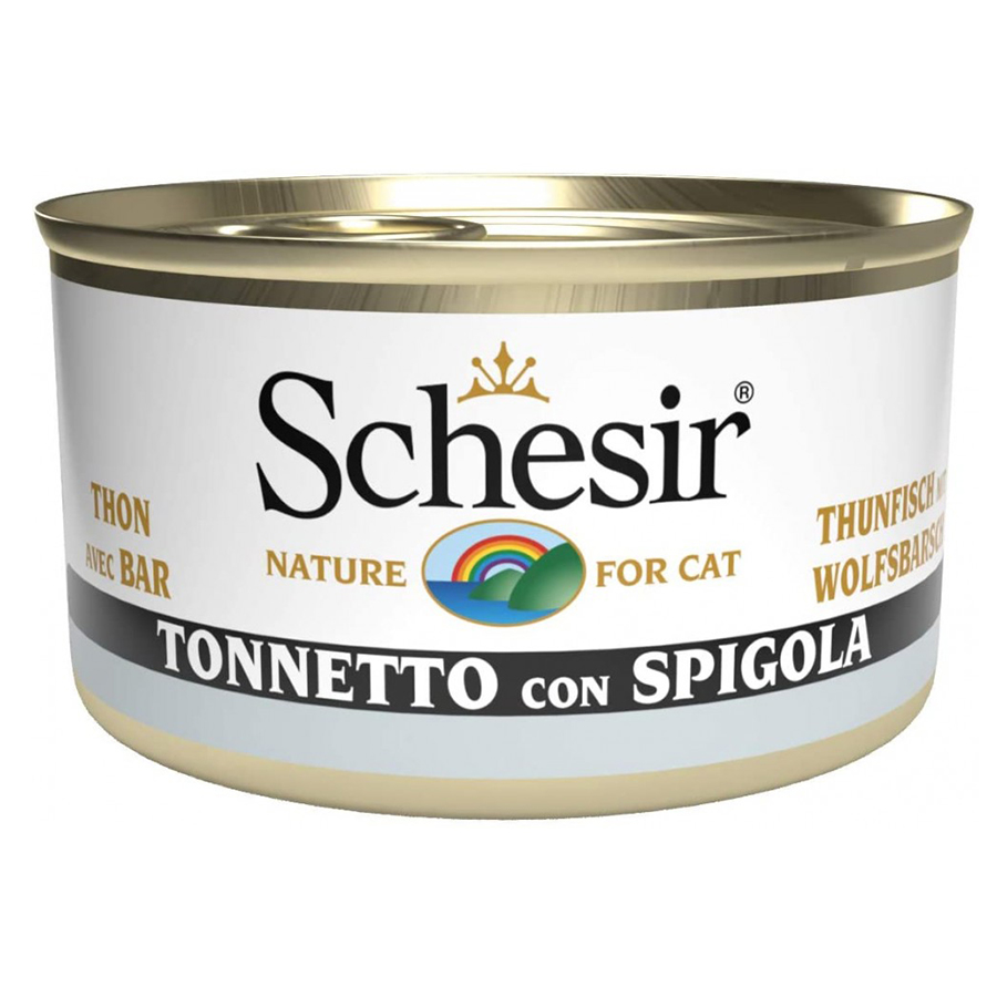 Συμπληρωματική υγρή τροφή γάτας Schesir Jelly με τόνο και λαβράκι.