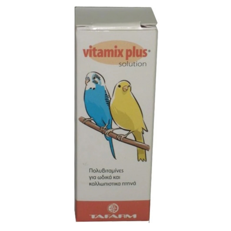 Tafarm Vitamix Plus Πολυβιταμινουχο διατροφικό συμπλήρωμα κατάλληλο βέβαια για την διατήρηση καλής φυσικής κατάστασης,της σεξουαλικής έκφρασης και της μακροζωίας των ωδικών και καλλωπιστικών πουλιών 15ml