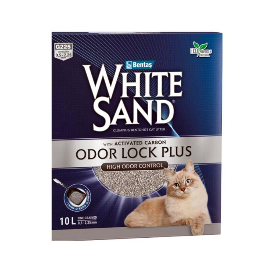 Η άμμος γάτας “White Sand Carbon Odor Lock 10L” είναι ένα είδος άμμου που χρησιμοποιεί τεχνολογία άνθρακα για να εξουδετερώνει και να κλειδώνει τις οσμές.